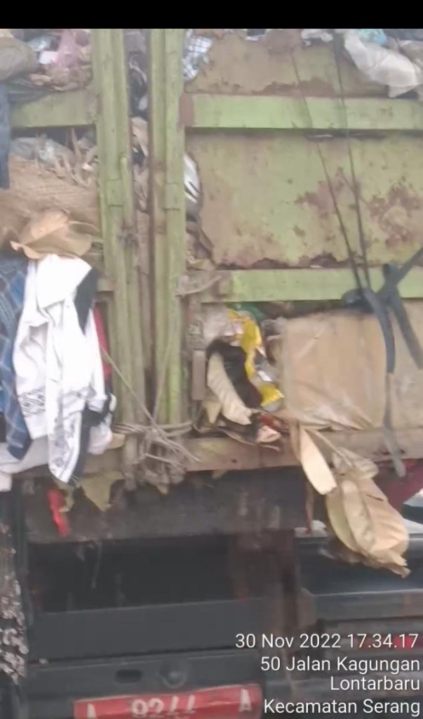 Berdasarkan pantauan Truk bermuatan sampah itu bewarna hijau melintasi Jalan Kota Serang, truk sampah Selain bodynya karatan, ternyata banyak berlubang tampak pintu Mobil tersebut kondisinya nyaris terbuka, hanya terkunci dari tali tambang (30 November 20222)