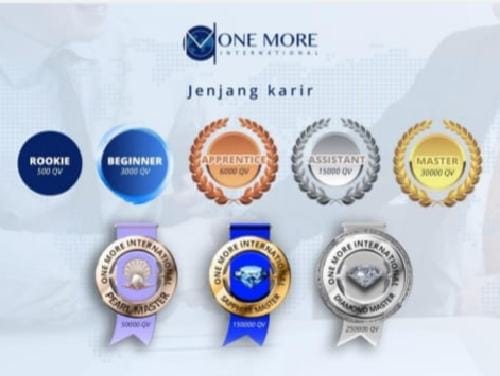One More memiliki Jenjang Karir yang sangat menjanjikan dalam mendapatkan sebuah keuntungan yang besar, jenjang karis tersebut diantaranya adalah Rookie, Reginner, Apprentice, Assistant, Master, Pearl Master, Sapphire Master dan Diamond Master. Pungkas Hj.Evi (Red).